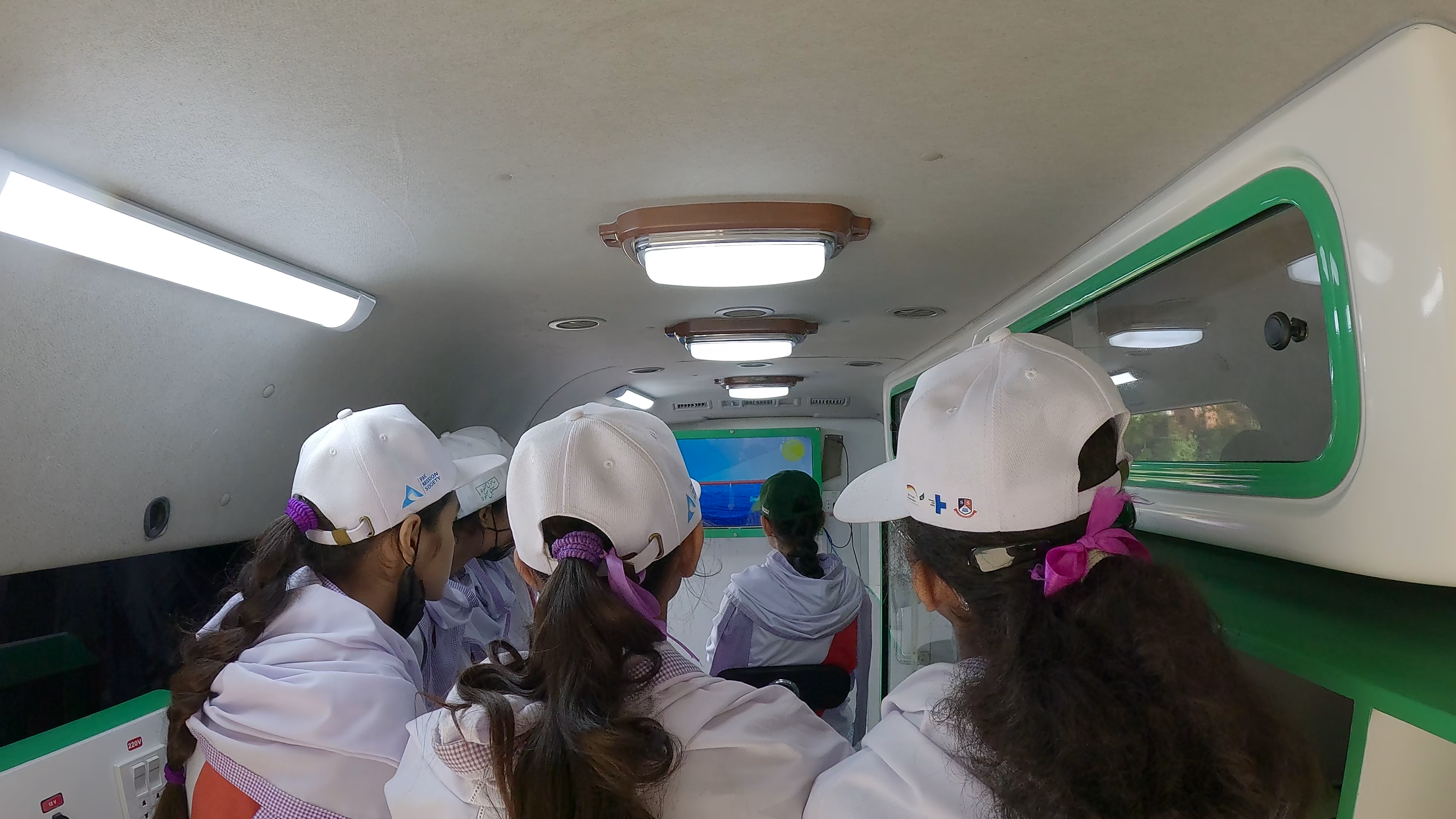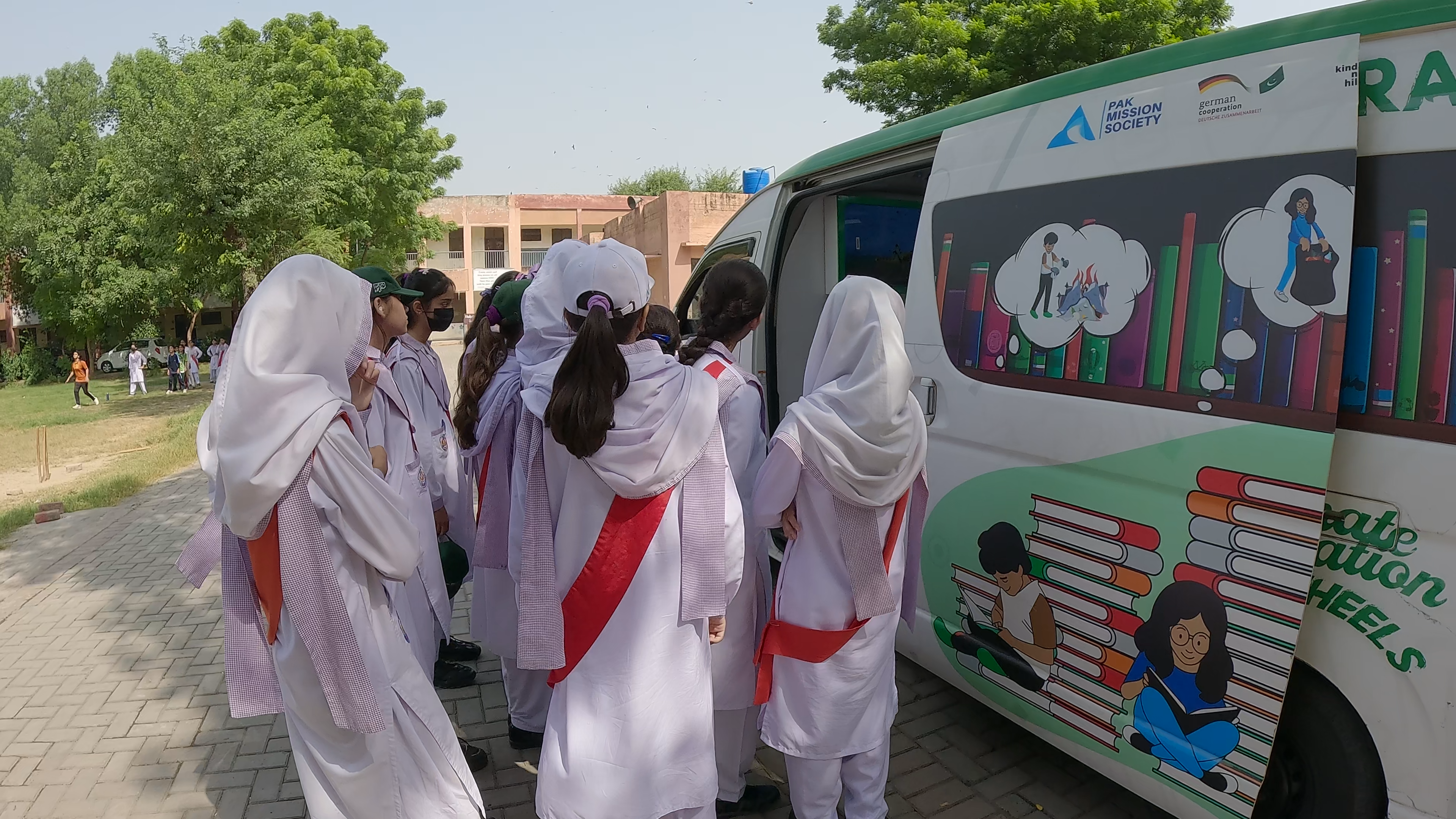 ایسی ہی ایک موبائل لائبریری کے ساتھ ہم لاہور کے ‘شہدائے اے اپی ایس گرلز ہائی اسکول ماڈل ٹاؤن’ گئے جہاں بچوں کے لیے ایک سیشن کا انعقاد کیا گیا۔ بچوں نے پاکستان کے ماحولیاتی مسائل پر مبنی دستاویزی فلم دیکھی، جبکہ ہوا کی آلودگی پر مشتمل کتاب کا گروپ مطالعہ بھی کیا۔ اس لائبریری میں ماحولیاتی مسائل کی کئی کتابیں رکھی گئی ہیں اور دلچسپی کو قائم رکھنے کے لیے اسکرین بھی نصب ہے۔ علاوہ ازیں، یہ لائبریری مختلف آبادیوں میں بھی لوگوں میں آگاہی پھیلانے کے لیے جاتی ہے۔