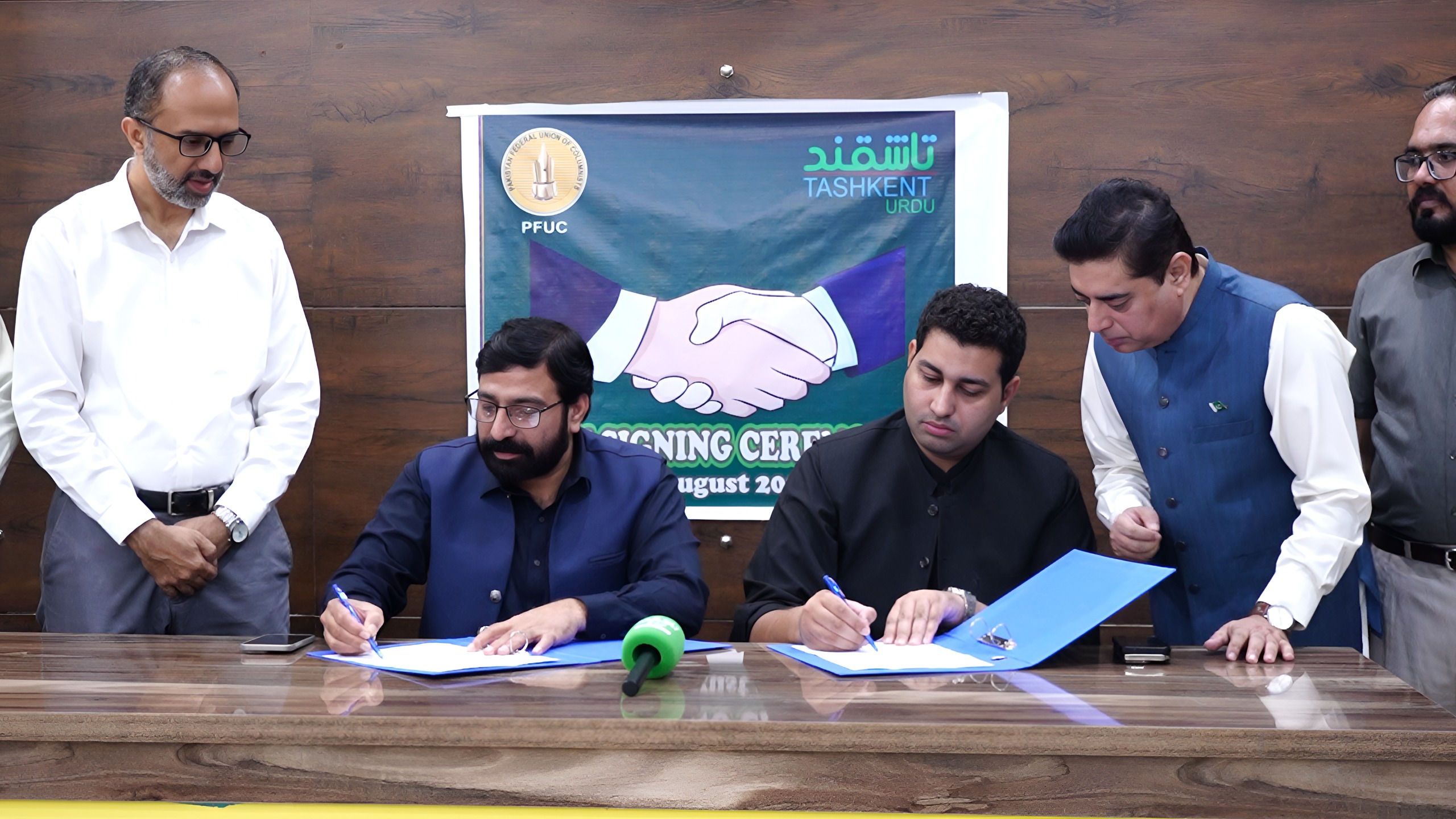 لاہور میں تاشقند اردو ڈیجیٹل اور پاکستان فیڈرل یونین آف کالمسٹ کے درمیان معاہدے پر دستخط کی تقریب منعقد ہوئی۔ تقریب کے دوران چیئرمین تاشقند اردو، ذبیح اللہ بلگن اور چیئرمین پی ایف یو سی، فرخ شہباز وڑائچ نے معاہدے پر دستخط کیے۔