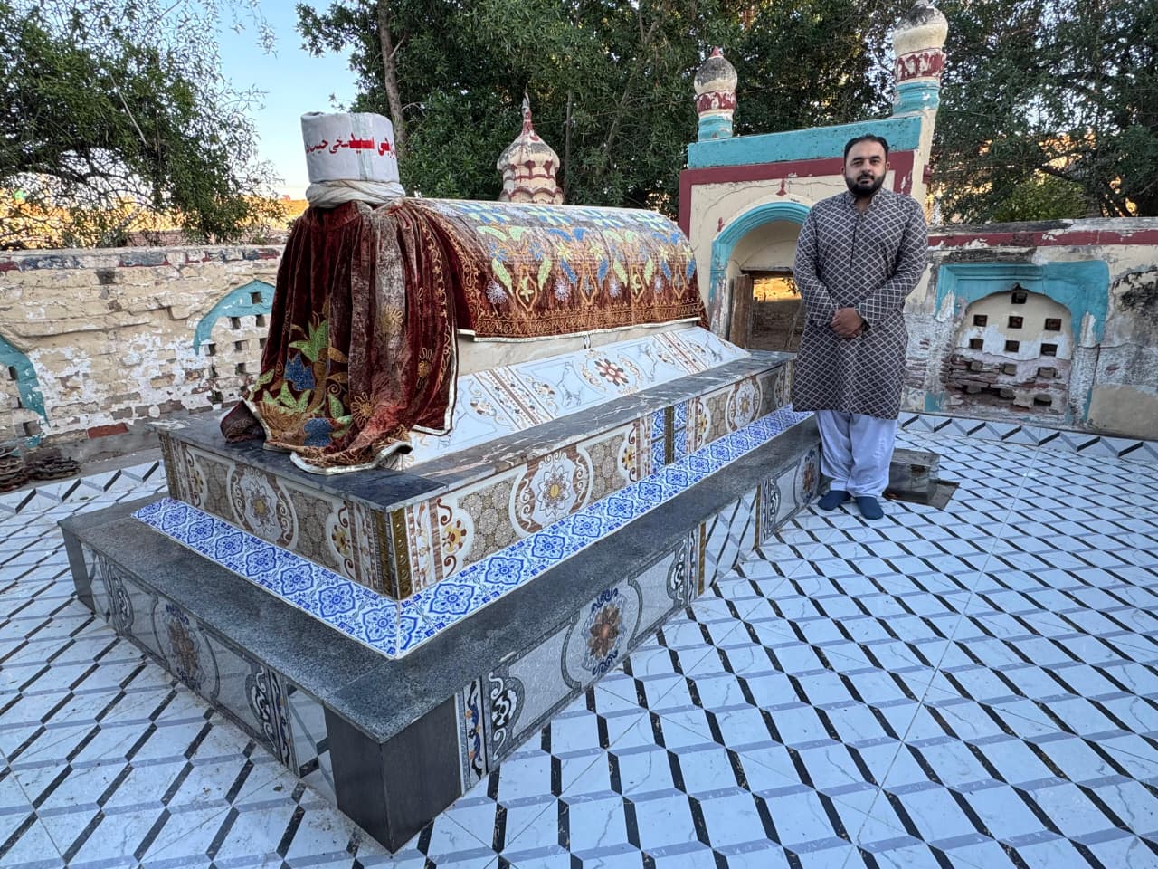 ہفتہ 4 اپریل کو ملتان کے کھوجی عامر بشیر، وسیب کے سلطان ڈاکٹر مزمل حسین، چاچائے وسیب عبد الرؤف شجرا اور اپنے بہترین ایکسپلورر دوست عرفان مجید کے ساتھ شاہ شمس کےدربار کے قریب قبرستان میں ایک ایسی قبر دیکھنے کا موقع ملا جو شاہ شجاع کی بتائی جاتی ہے۔