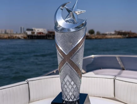 یہ یادگار ٹرافی چاندی سے بنی ہوئی ہے، اس کا وزن 10 کلوگرام ہے اور اسے 22 ہزار سے زائد قیمتی زرقون پتھروں سے سجایا گیا ہے۔