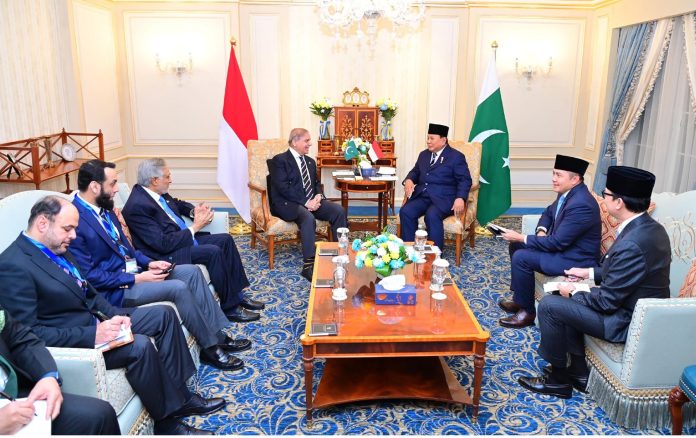 وزیر اعظم محمد شہباز شریف نے قاہرہ میں ڈی-8 سربراہی اجلاس کے موقع پر انڈونیشیا کے صدر پرابوو سوبیانتو سے ملاقات کی، جس میں دونوں رہنماؤں نے دوطرفہ تعلقات، تجارتی اور اقتصادی تعاون، اور کثیرالجہتی فورمز پر تعاون سمیت مختلف امور پر تبادلہ خیال کیا۔